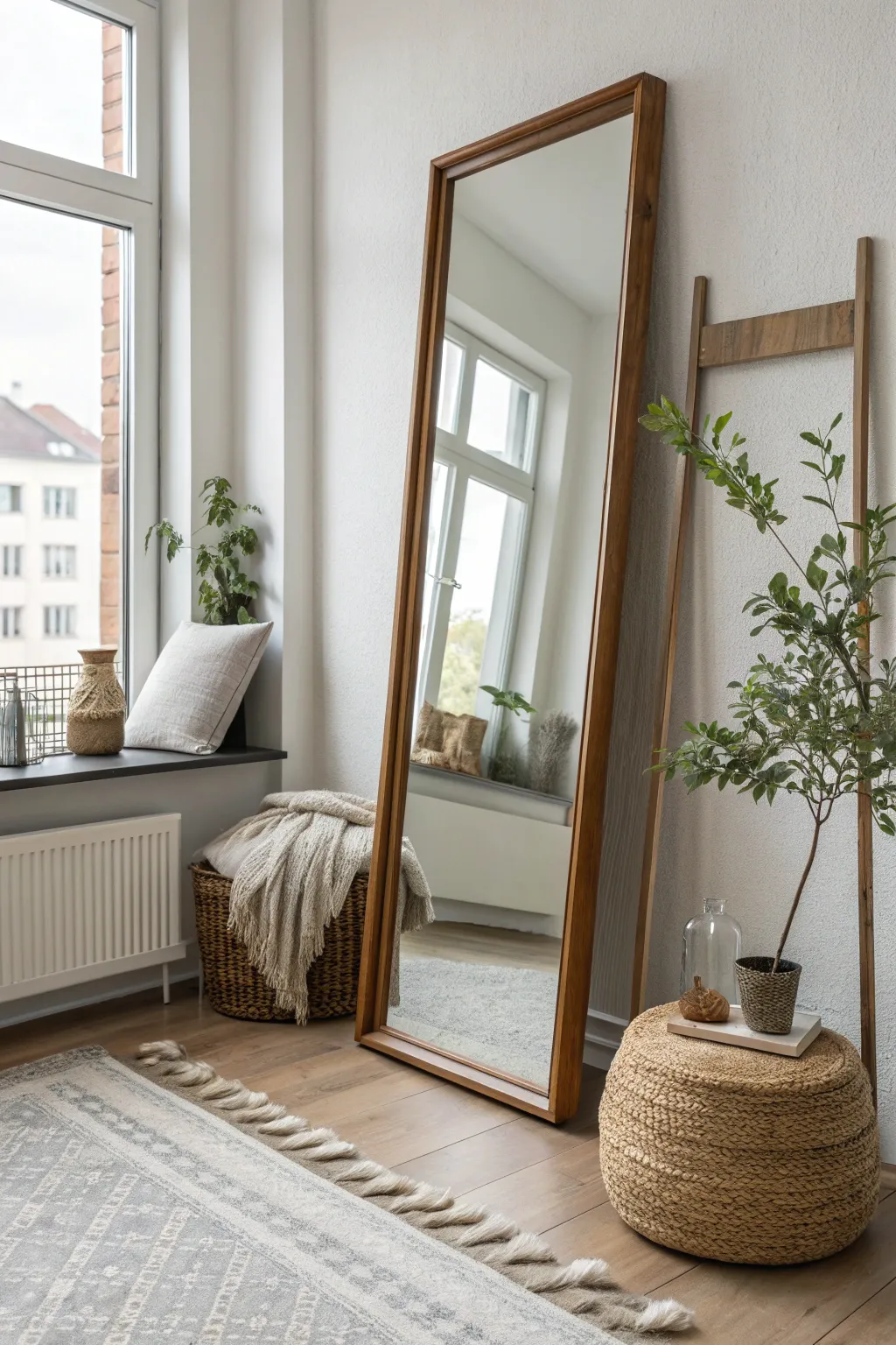 • Full-Length Mirror with Wooden Frame: Amplify your space and style with a sleek full-length mirror, enhancing natural light effortlessly.