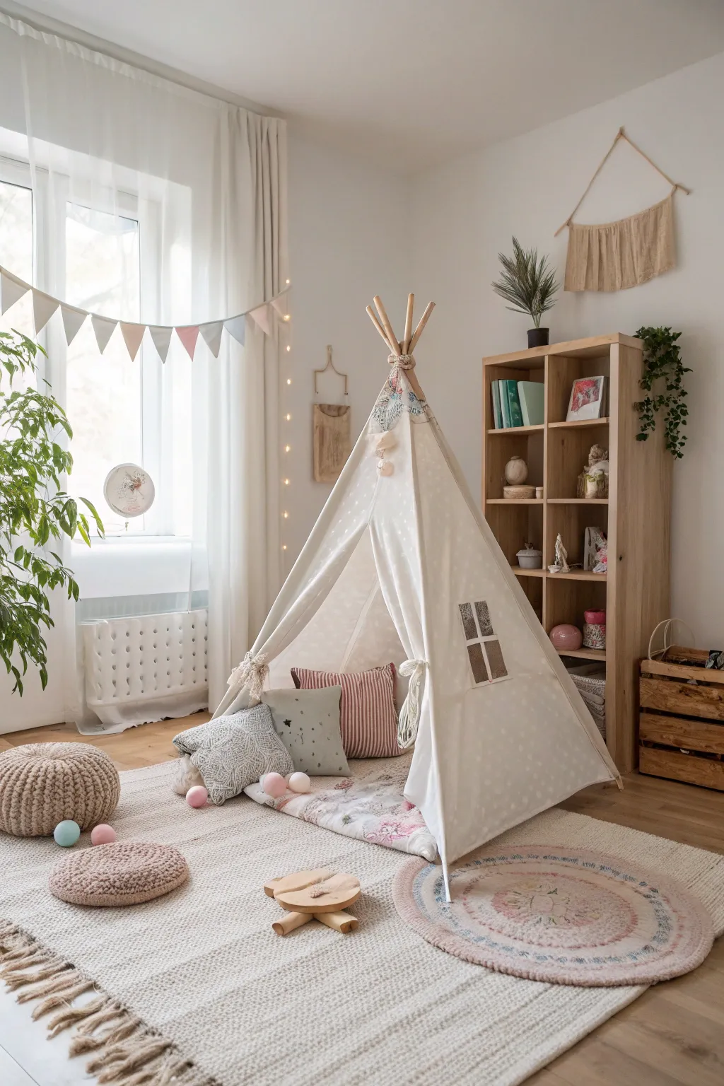 Include a play tent or teepee for a cozy nook. It’s perfect for quiet reading time or imaginative play, and my kids have always loved having a little hideaway.