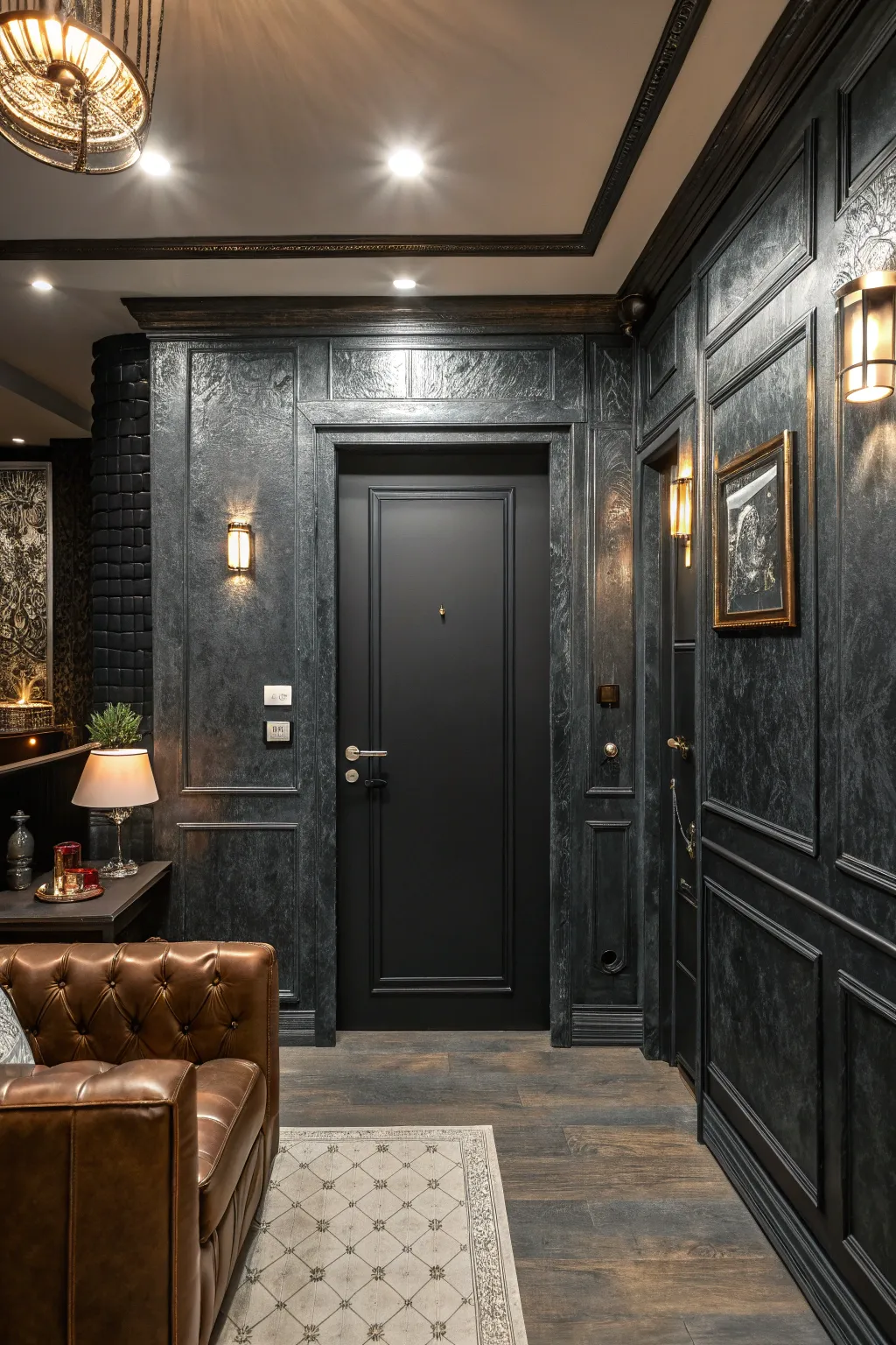 Pair black doors with textured walls for added depth and interest. I find this combination adds a unique character to any room.