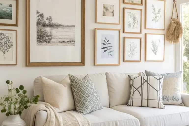 Creating a gallery wall behind your couch is like crafting a visual story that reflects your personality and taste. Whether you’re into bold abstracts or serene landscapes, there’s a perfect arrangement waiting for you. Layer with Lighting Lighting adds depth and highlights the beauty of your gallery wall. 💡 #LightingDesign #CozyInterior Use lighting to highlight your gallery wall and add ambiance. I often use picture lights or sconces to create a warm glow. Check these…