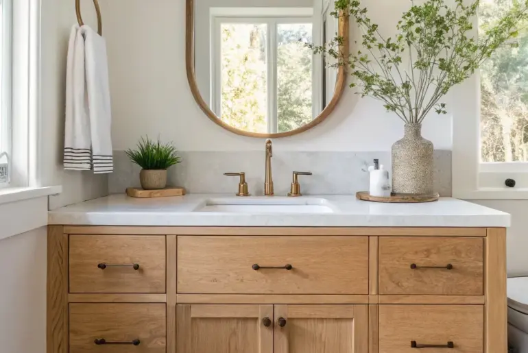 Welcome to a world where nature meets elegance right in your bathroom. Let’s explore how an oak vanity can transform this essential space into your personal sanctuary. Embrace Versatile Styles Versatility at its finest—oak vanities beautifully blend modern and rustic styles for a timeless look. Oak vanities are incredibly versatile, fitting seamlessly into both modern and rustic designs. It’s all about the balance between traditional warmth and contemporary sleekness. These products might help: Rustic Bathroom…