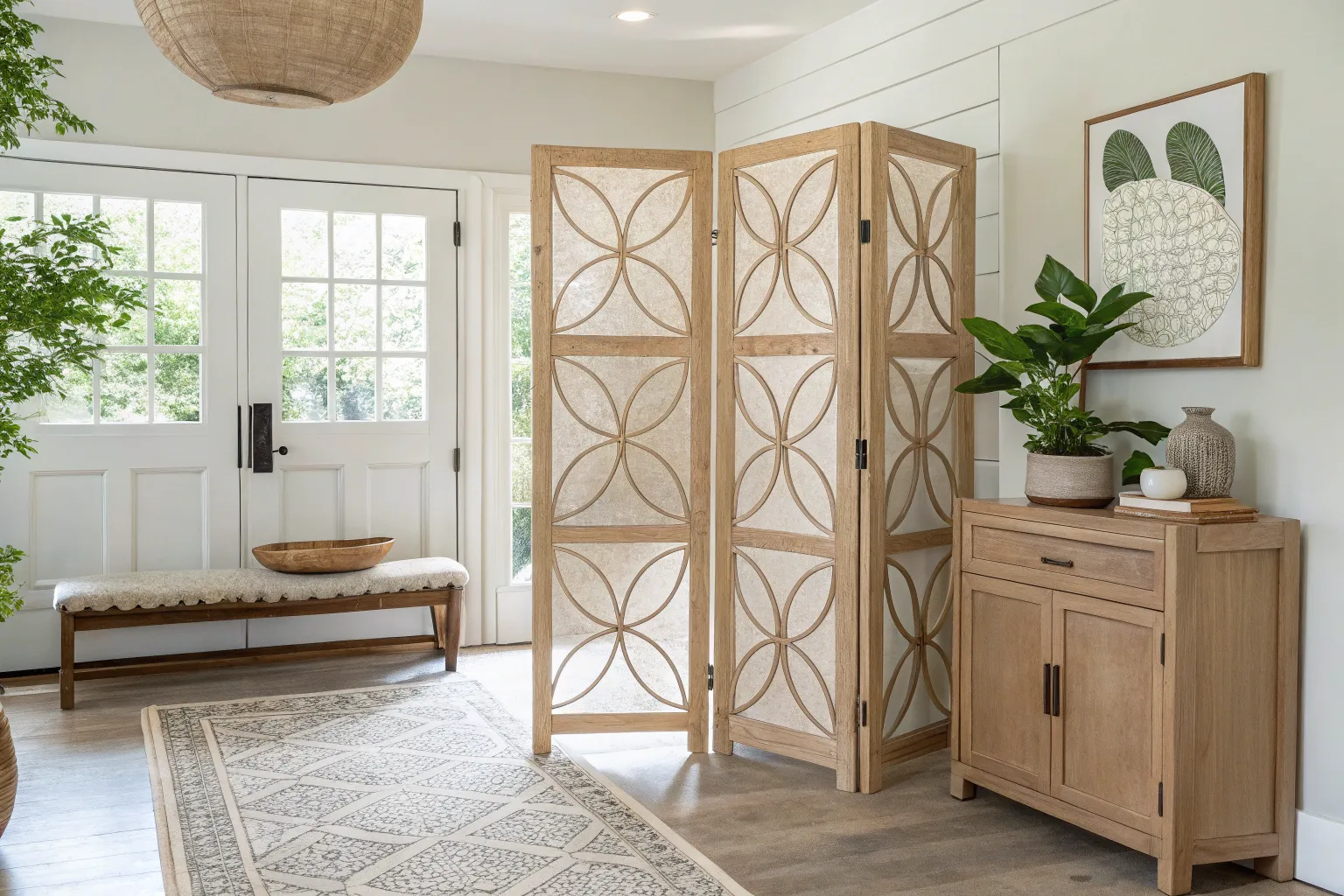 - Rattan Room Divider: Enhance your entryway with a rattan room divider, adding texture and warmth instantly.