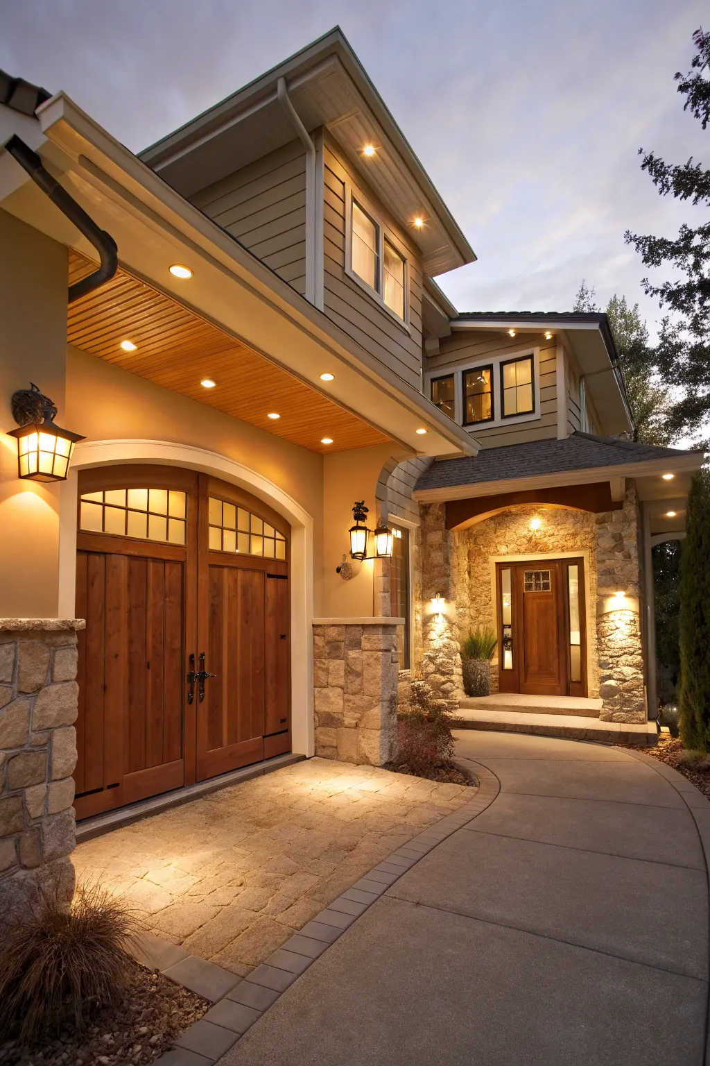 - Weatherproof Recessed Soffit Lighting: Illuminate your garage doors with weatherproof recessed lights for durable elegance all year long.