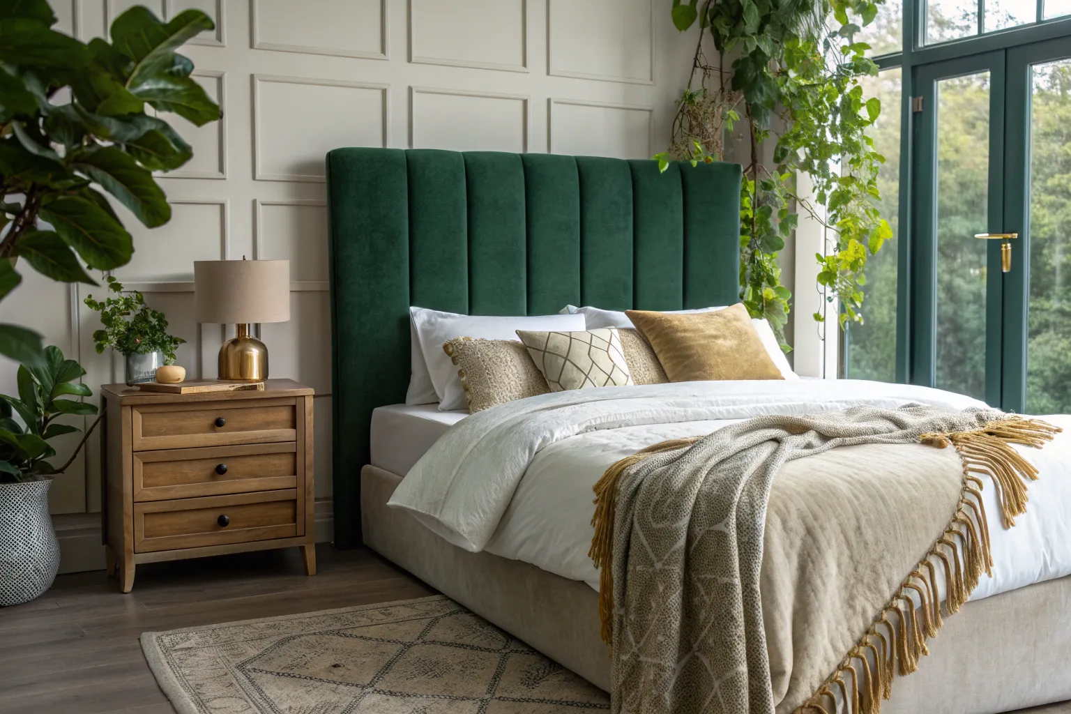 Green paired with neutrals creates a balanced and timeless bedroom aesthetic.