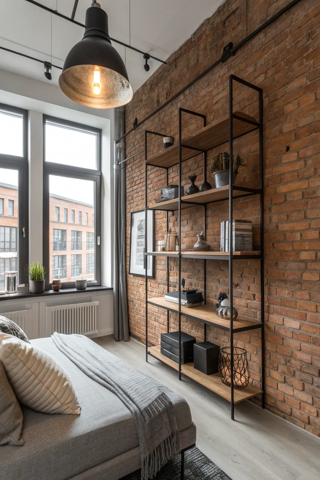 - Metal and Wood Bookshelf: Organize with a sleek metal and wood bookshelf, perfect for that edgy, raw look.