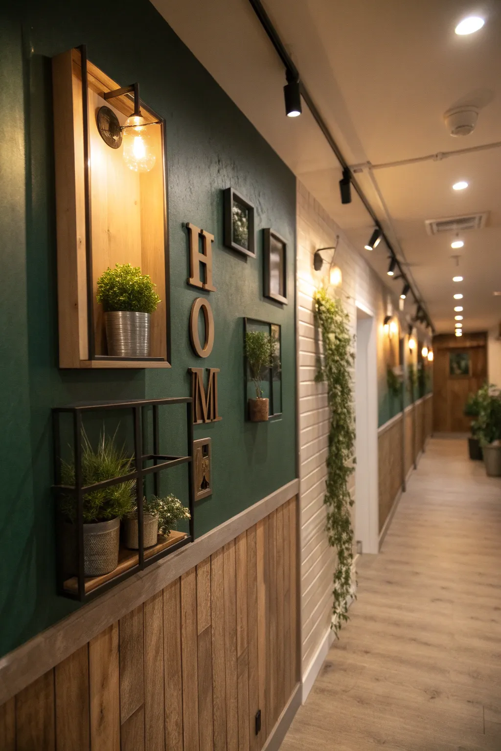 Create depth with letters in shadow boxes. It’s a unique way to layer art and letters, which looks fantastic in a hallway.