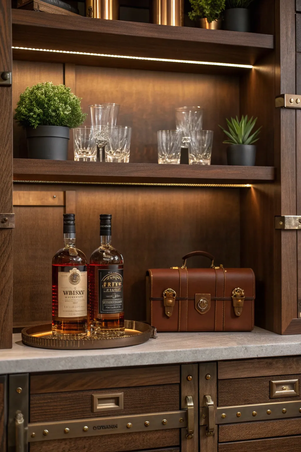 - LED Light Strip for Shelves: Highlight your liquor collection with ambient LED light strips under each shelf.