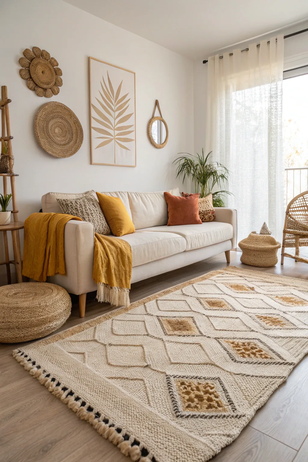 • Geometric Pattern Area Rug: Define your space with a vibrant geometric pattern rug for a striking focal point.