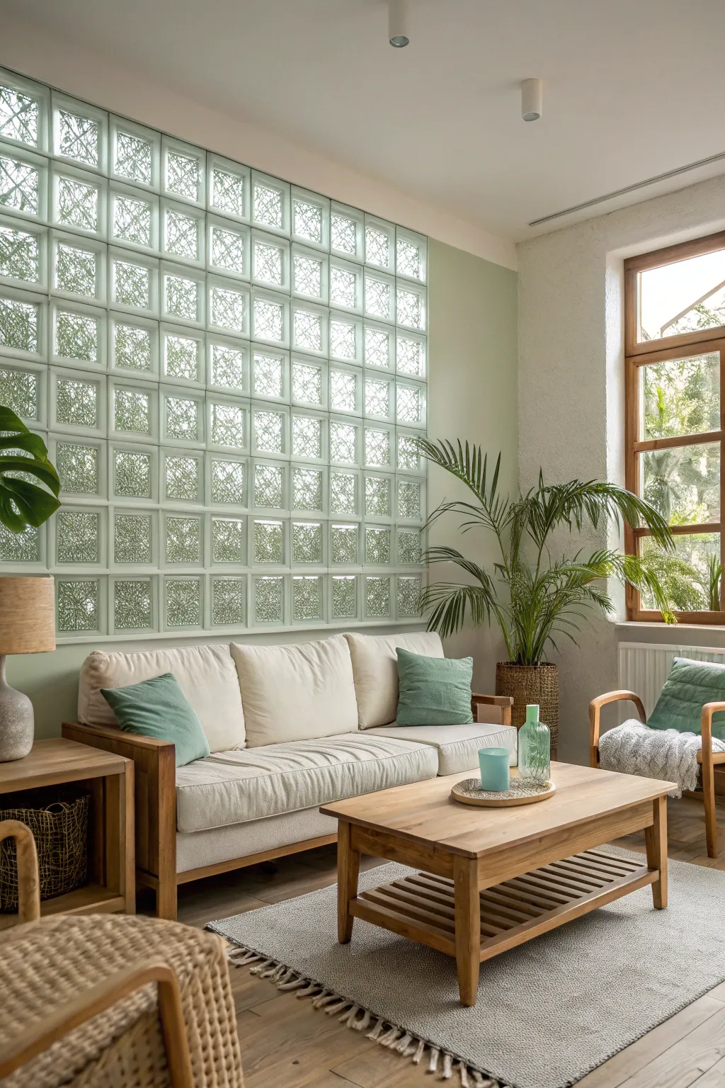 For a touch of privacy with style, opt for frosted glass blocks. They soften the light and add a hint of mystery to your living room.