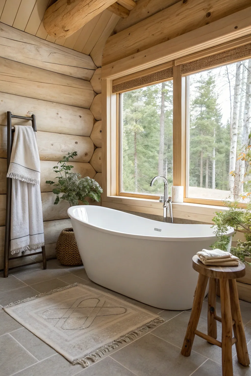 - Soft Earth Tone Bath Rugs: Add warmth underfoot with soft, earth-toned bath rugs that complement your log home bathroom.