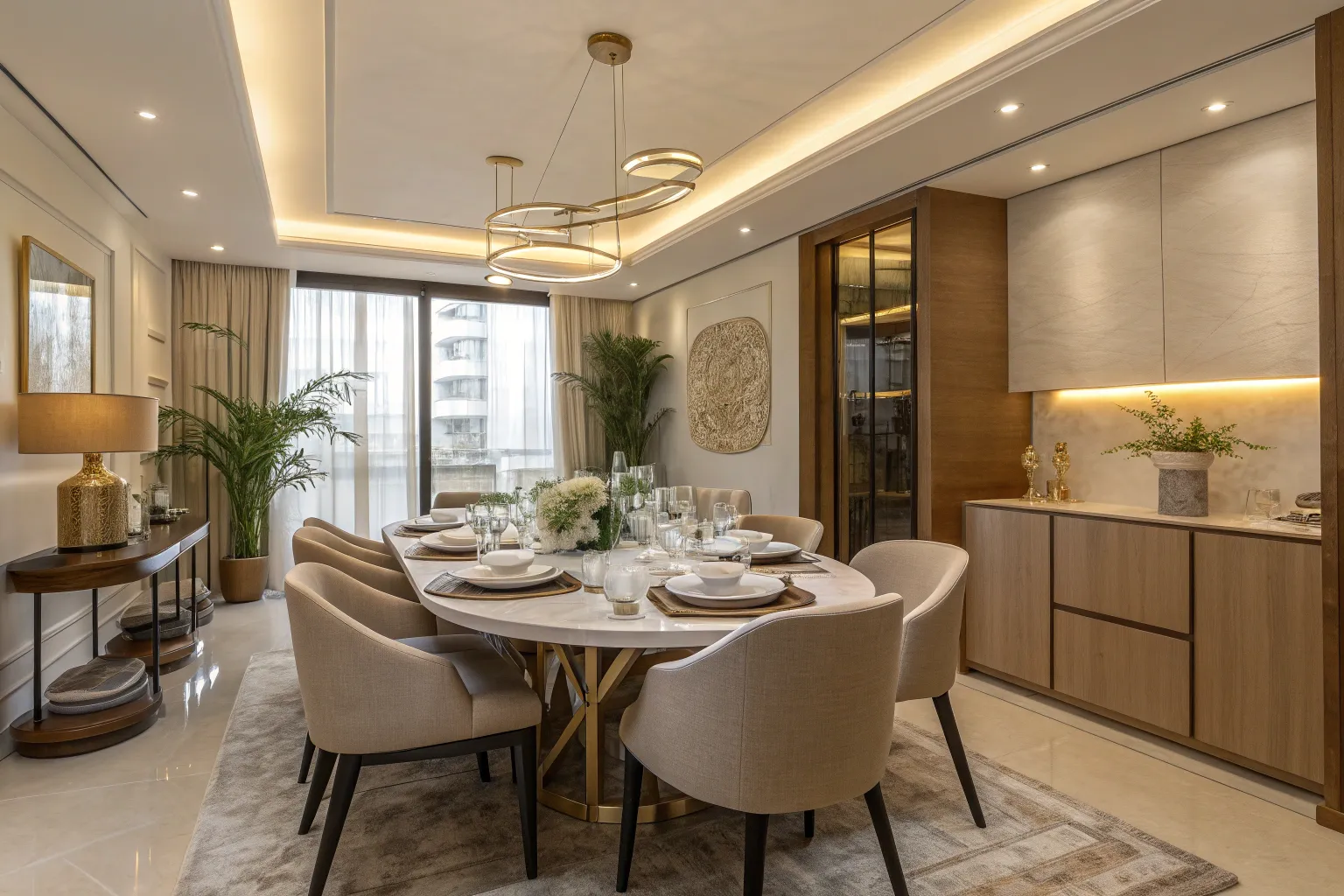 Blend luxury with nature by incorporating indoor plants or a view of a garden. This integration brings a refreshing and calming element to the dining space.