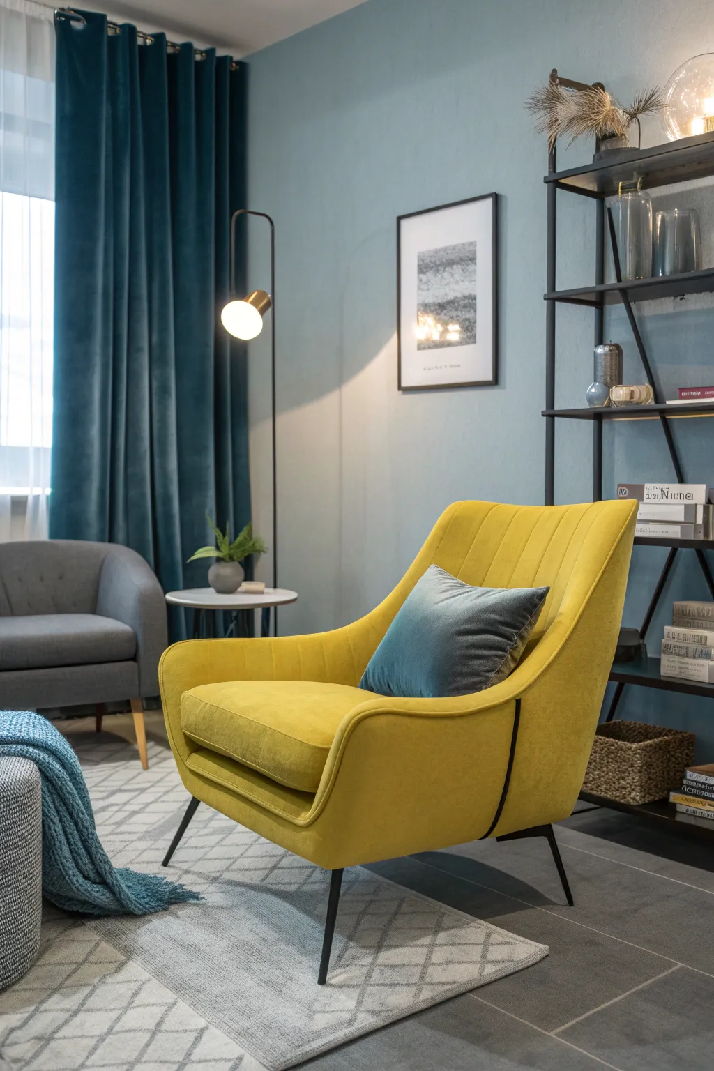 • Yellow Accent Chair: Brighten your living room with a stylish yellow accent chair for an instant pop of color.