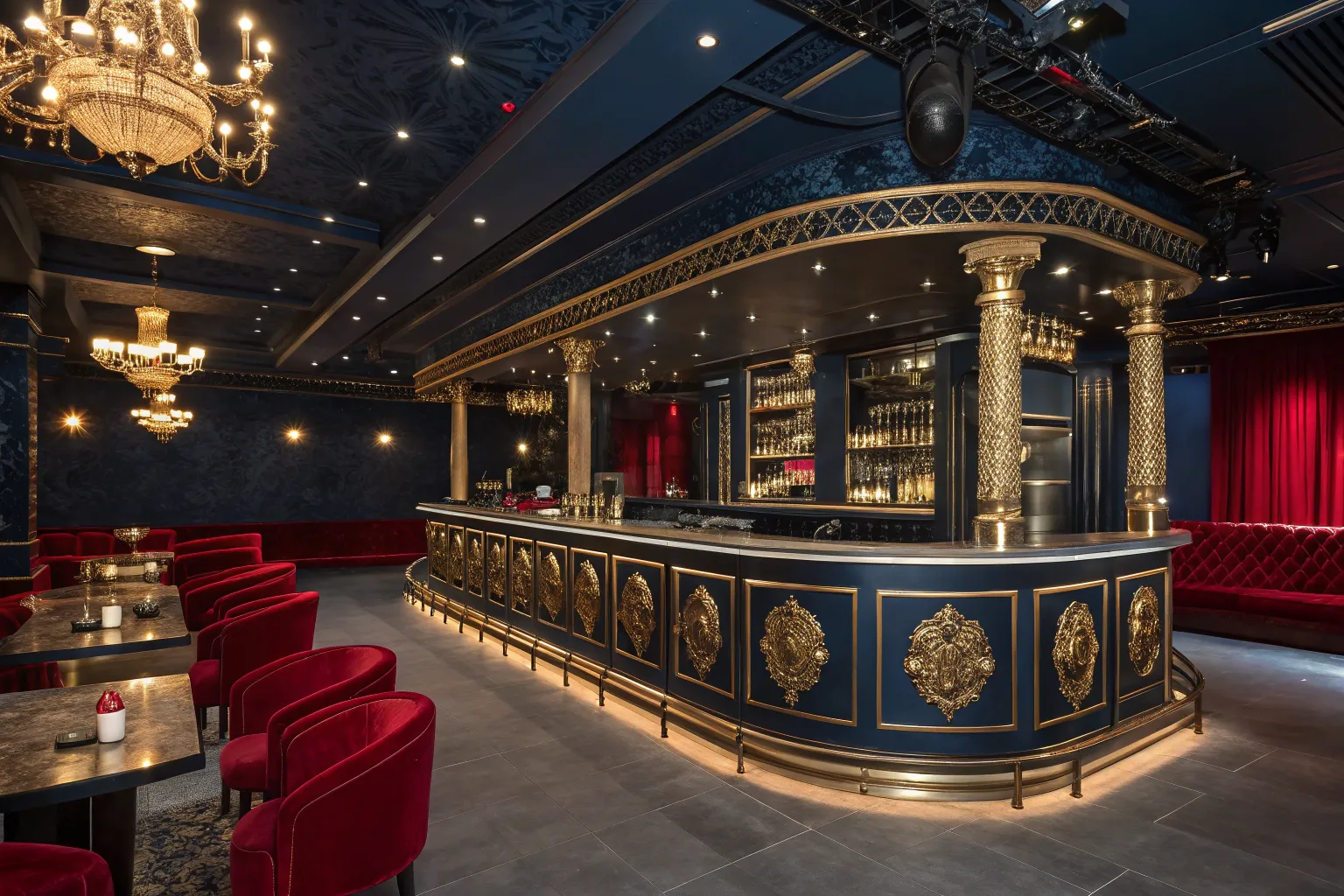 Sleek lines and modern design create an unforgettable, stylish nightclub atmosphere.