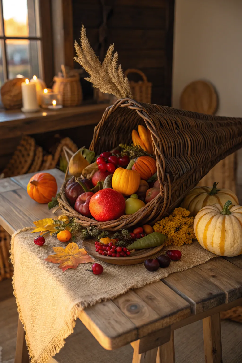 - Wicker Cornucopia Basket: Enhance your centerpiece with a traditional wicker cornucopia basket, perfect for seasonal displays.