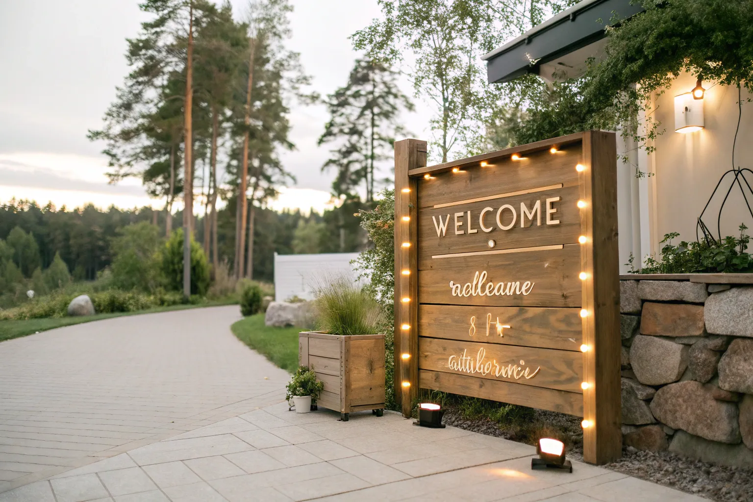 For a touch of magic, fairy lights can turn any outdoor sign into an enchanting spectacle. They bring a dreamy quality to my evening garden gatherings.