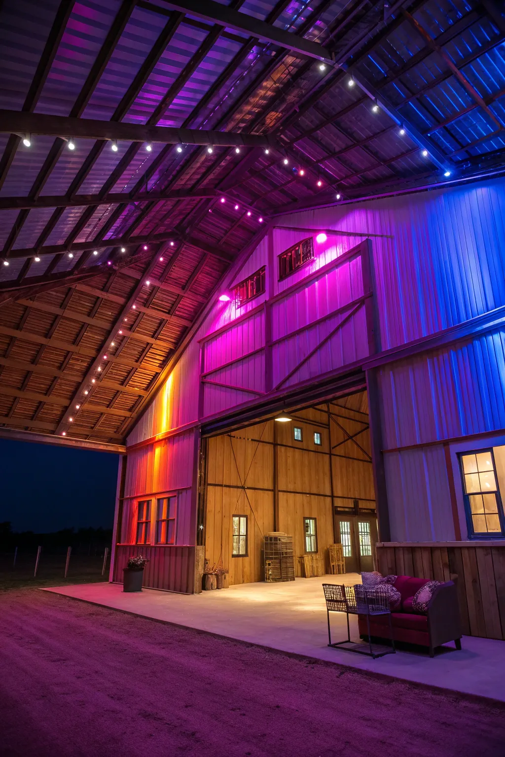 Transform your pole barn into a vibrant space with color-changing LEDs that adapt to any mood.