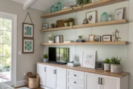 - Floating Wall Shelves: Enhance your décor with floating shelves to discreetly store remotes and small items.