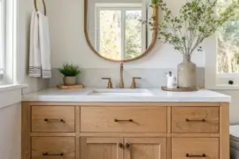 - Reclaimed Wood Bathroom Vanity: Transform your space with a rustic wood vanity, adding a unique charm to your bathroom.