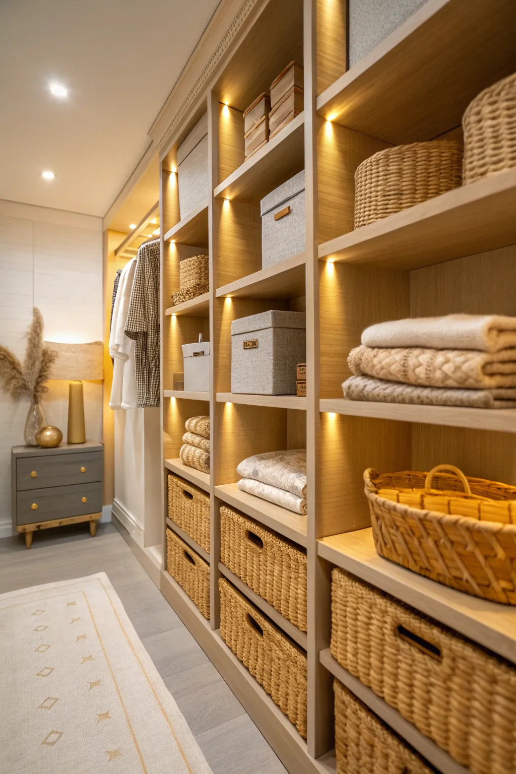 • Wicker Storage Baskets: Enhance shelf appeal with wicker baskets, perfect for organizing small items stylishly.