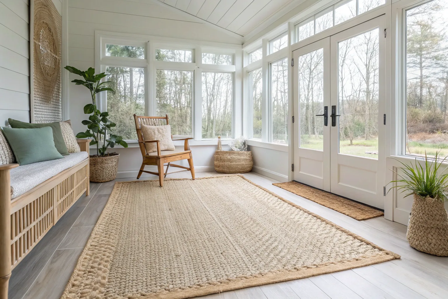 Natural fiber rugs like jute bring warmth and texture to your sunroom, enhancing its connection to nature.
