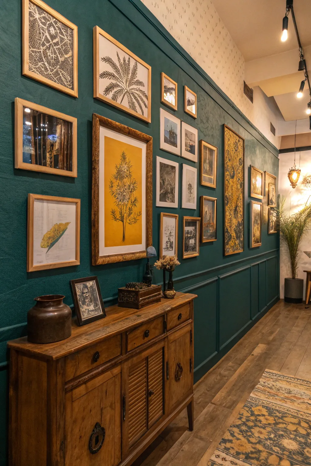 Blend different frame styles to craft a vintage gallery wall that feels timeless and unique.
