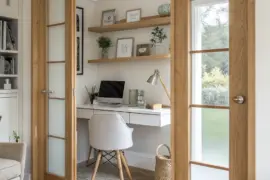 - Sheer White Drapes: Add lightness and elegance with sheer white drapes, creating a peaceful office ambiance.