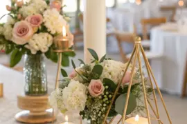Add seasonal florals like white roses or baby’s breath for a soft touch. These blooms brighten the table and echo the winter theme.