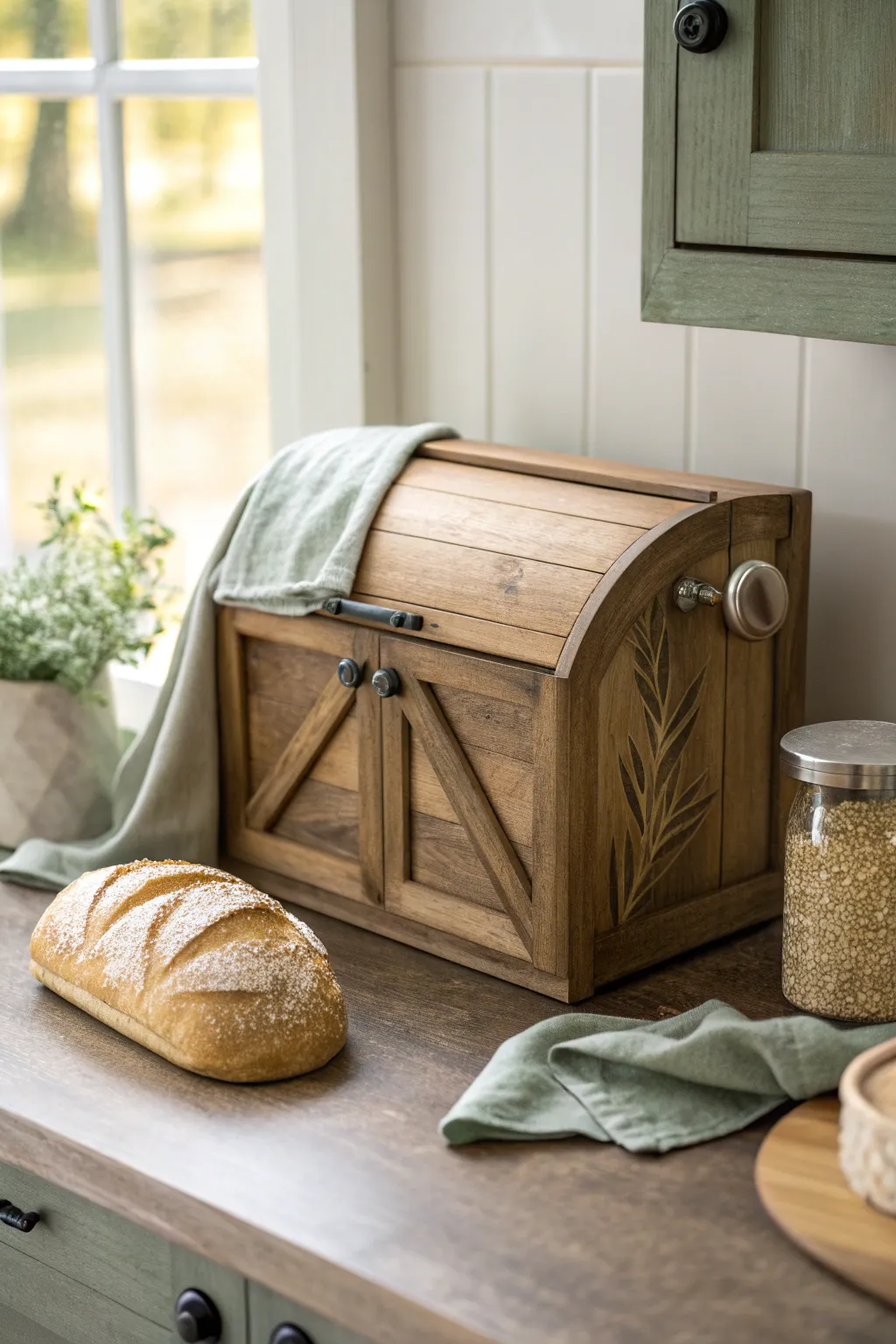 Bring the cozy charm of the countryside to your kitchen with a rustic farmhouse bread box.
